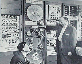 a tape machine in 1953, which would become practical in 1956 when Ampex