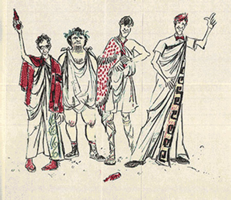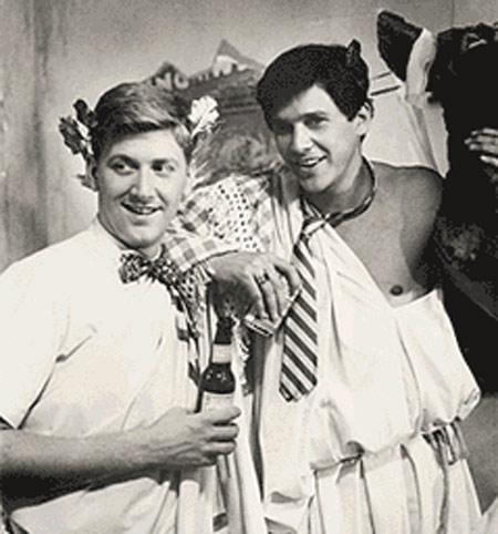 (Above) Sketch for Animal House by costume designer Deborah Nadoolman (Below) Still from Animal House with Jamie Widdoes (left) and Tim Matheson