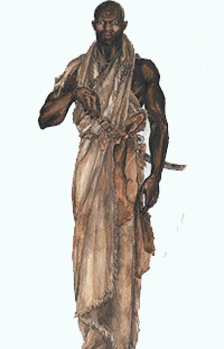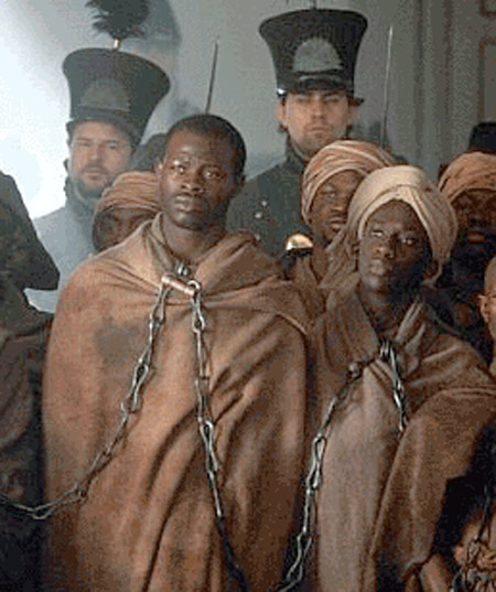 (Above) Sketch from Amistad by costume designer Ruth E. Carter (Below) Still from Amistad with Djimon Hounsou.