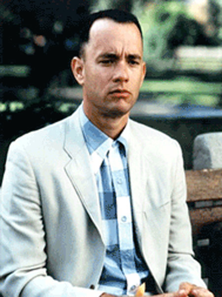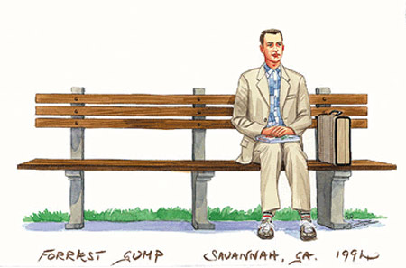 (Above) Sketch from Forrest Gump by costume director Joanna Johnston (Below) Still from Forrest Gump with Tom Hanks.