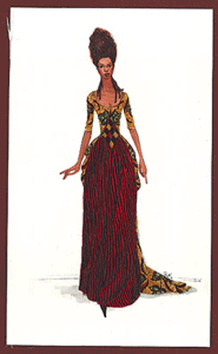 (Above) Sketch of Erykah Badu for Blues Brothers 2000 by costume director Deborah Nadoolman (Below) Still from Blues Brothers 2000 of Erykah Badu.