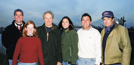 DGA members on Mystic River: (L-R) 1st AD Rob Lorenz, 2nd 2nd AD Katie Carroll, director Clint Eastwood, 2nd AD Melissa Cummins-Lorenz, UPM Tim Moore and stunt coordinator Buddy Van Horn on location in Boston.