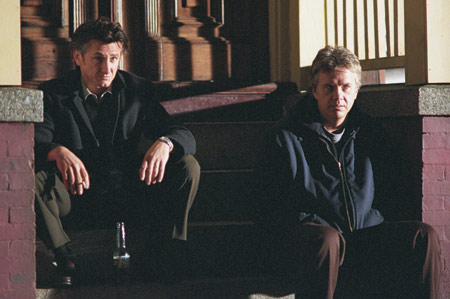 Penn and Robbins contemplating another tragic turn in the lives of the characters of Mystic River