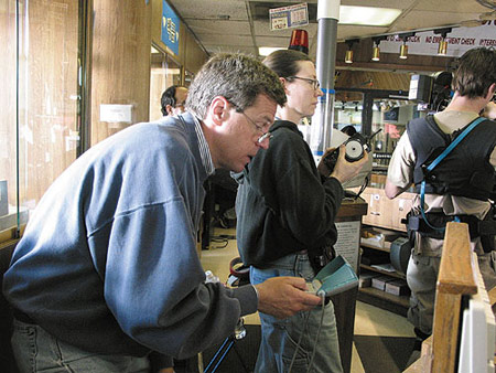 (Top) In New Jersey, UPM Mark Kamine of The Sopranos (below) In Los Angeles, 1st AD Michael Klck (right) on the set of 24 with cameraman