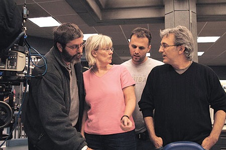 In New York, UPM and associate producer Mary Rae Thewlis (center) on the set of Law and Order: Criminal Intent with fellow DGA members John L. Roman, Michael Smith and Fred Berner