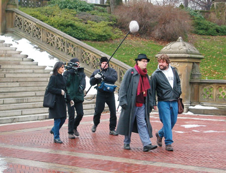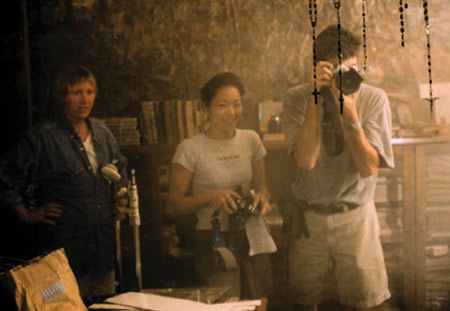 On the set of In the Realms of the Unreal, are (from left) associate producer Karen Carter, director Jessica Yu and cinematographer Russell Harper