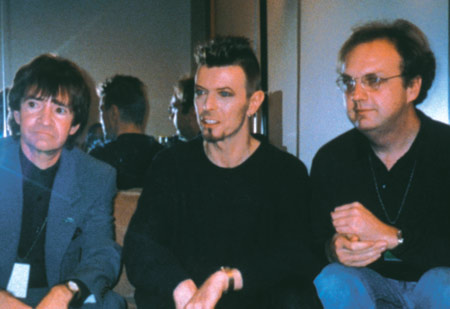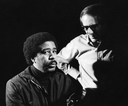 (Top) Rodney Bingenheimer, David Bowie and director George Hickenlooper from Mayor of the Sunset Strip (below) Richard Pryor and Mel Stuart during production of Wattstax