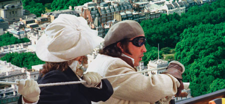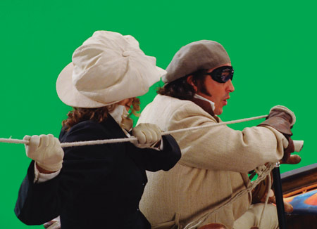 Westenhofer also detailed the process of creating digital actors, noting that one should always use a real actor whenever possible. However, a particular sequence involving the principals flying by in the film's "Flying Machine" would have been extremely difficult to shoot with a blue screen, making the digital option more cost-effective. The actor's form and detailed features were recorded using a "cyberscan" process, while their various wardrobe elements were scanned separately. Digital extras were created by recording the activities of extras on a motion capture stage and inserting their computer-wardrobed characters into various shots.