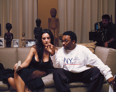 Monica Bellucci and director Spike Lee on the set of his latest film She Hate Me