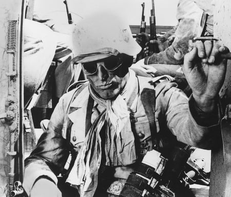 It was always in the data base —boxes and boxes of footage, supposedly labeled The Big Red One, were allegedly stashed in the Warner Bros. vault in Kansas City. But as we all know, between data bases and palpable reality a shadow often falls. If everyone was very lucky those boxes would (a) actually still exist and (b) contain at least some of the footage — close to an hour's worth — excised by the studio from Sam Fuller's great war movie just prior to its initial release in 1980. If we were unlucky, the boxes might already have been shuffled out the door and into the limbo of lost films. Or they might merely hold footage duplicating the severely truncated version of Sam Fuller's episodic epic of World War II combat that first appeared in 1980.