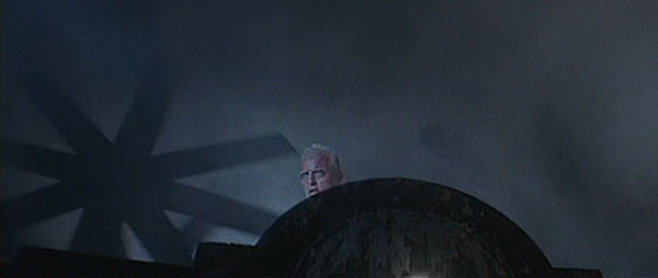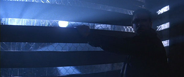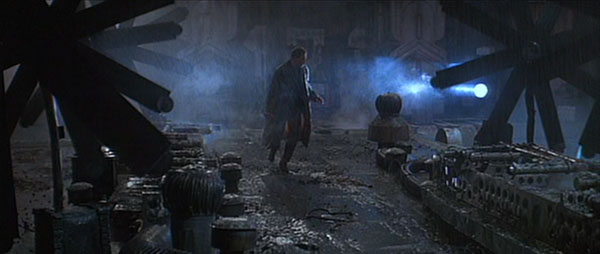 This is Batty slowly emerging from behind a tank. One thinks one is being influenced by films from the past, and I think you are. Everyone is influenced by everything that you see, or you should be. There’s a lot of German expressionist cinema in this shot–the shadows, the dramatic low angle. Fritz Lang has seeped in here a lot.