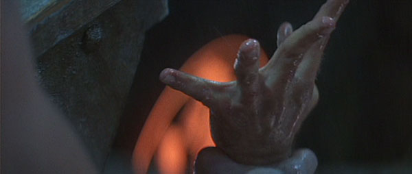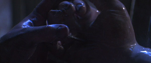 Batty plunges his hand through the plaster and grabs Deckard’s wrist and yanks his whole hand and arm right through the wall and then punishes him by snapping a finger. I think a lot of this influence comes from the Japanese movies–Kurosawa was a master at taking something very simple and making you very squeamish. Like a lot of the shots in this sequence, this one is fairly static, which is a choice. In Alien, you have everything on the move. Here, I was a bit uneasy about steadicams because they were very cumbersome in those days and not nearly as sophisticated in their balance and design as they are now.