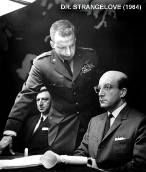 The range of presidential competence and aspirations is evident in a memorable trifecta from 1964, all three reflecting the terror of the times roused by the 1962 Cuban missile crisis. The aforementioned President Lyman, as portrayed by Fredric March in John Frankenheimer's Seven Days in May (1964), is at the end of his term. He has the same approval rating enjoyed by our current president, 29 percent, but is a dyed-in-the-wool liberal. Determined to negotiate with the enemy, he is accused of appeasement by a high-ranking general (Burt Lancaster), who is secretly preparing a coup d'état. Informed of his impending ouster (by Kirk Douglas), Lyman is not ready to junk the Constitution in a world succumbing to hysteria, and he is too righteous to blackmail the general for adultery. Fortunately, screenwriter Rod Serling provides him with a convenient deus ex machina.