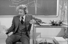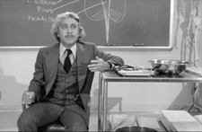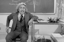"It's this tension in the voice of this man of science that verges on hysteria," Russell marvels. "He's struggling to contain it, which I think is an emotion a lot of us feel." In his tantrum, Wilder accidentally stabs himself in the leg with a scalpel and tries to hide it from his class. "He brings it down, like he's controlling it but could almost start crying or screaming again. We can feel that cracking in his voice. It's a performance, but the director's hand is in all of it. I imagine the first thing Brooks did was cast five ingenious comedians, people who know how to just sit there and pick up a napkin in a way that's going to be funny."
