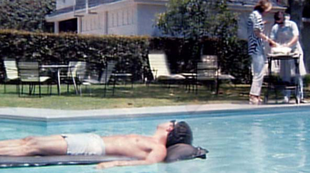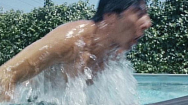 ‘Hello darkness,’ the opening line from Simon and Garfunkel’s ‘The Sounds of Silence,’ starts over a black screen and the pool fades in. [Screenwriter] Buck Henry and I knew we didn’t want a realistic picture and the most surreal thing in it is this montage, covering not only a lot of time but inner time. We had a filter that was crosshatched to cause those little sparkles in the water. We called it ‘Sparkle Plenty.’ The water wasn’t lit or colored; it’s all filter and sunlight, and I think we had guys doing that pedaling-thing to move the water. We shot a half-hour of water, and after 10 minutes of watching dailies, Larry Turman, the producer, said, ‘I think the small ones are winning.’