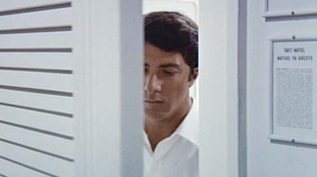 Nichols also worked with production designer Richard Sylbert to design and build the interior of Benjamin’s home and the hotel room to match each other in ways that would allow clever cuts and framing to disguise the transitions between locations. “We did a lot of fancy camera shit,” says Nichols, “but nobody has ever mentioned it in 40 years because if you have events that are compelling you’re completely unaware of what the camera is doing, which is the idea.” The result is a fluid journey through Benjamin’s psyche, perfectly translating his troubled state of mind to images on the screen.