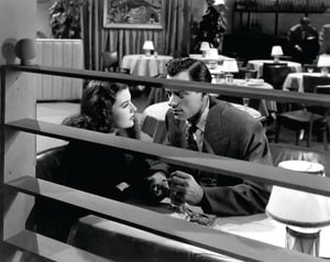 Robert Mitchum is awestruck by Jane Greer in Jacques