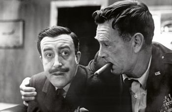 Peter Sellers (left), in one of his three roles, is overpowered by Sterling Hayden's