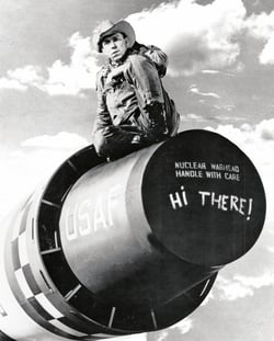 "It was amazing how Kubrick steered this film," Kasdan concludes, as Pickens rides the bomb to oblivion, audaciously accompanied by Vera Lynn singing "We'll Meet Again." "Everybody who's ever made movies has that image burned into his brain. It's not even a particularly great effects shot, but it's the greatest possible idea, and that's always more important than the shot itself. There are so many land mines in this kind of movie, with this many tones and variety of jokes. That's why it's never been done again. There've been great comedies but I just can't think of what's on the list with this."