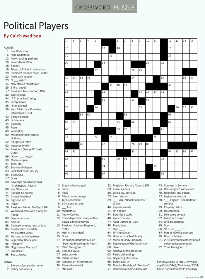 Click here to download a printable PDF of the puzzle. Click here for the answers.