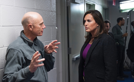 Like most TV series, SVU directors can’t afford to waste a minute. They have eight days to prep and eight days to shoot, covering 8-10 script pages a day. Leight, who took over as showrunner last year, prefers directors to commit to three or four episodes a season. “When there’s too many singletons,” says Leight, “it wears people down.” At the same time, too much recycling of the same directors is not ideal. A new director, for instance, might suggest a novel placement for a camera. “And we realize that in all the episodes before this one, no one put the camera there before.”