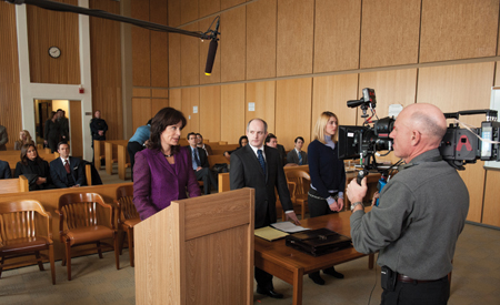 (above) Director-producer Michael Smith, who moved to SVU in 2012 after directing lighter shows, says he has to adapt his style for the darker material. (below) De Segonzac likes to shoot close ups first when the actor is fresh, and rarely pauses between takes