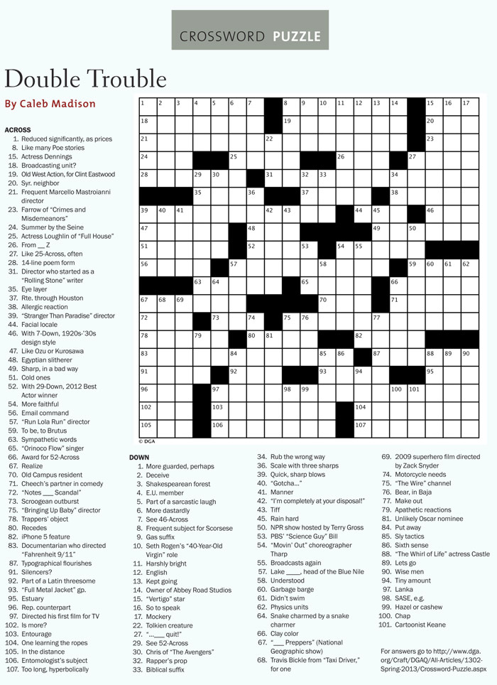 Click here to download a printable PDF of the puzzle. Click here for the answers.
