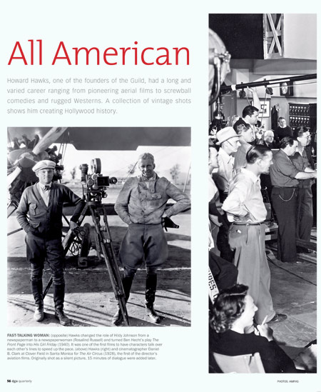 Howard Hawks, one of the founders of the Guild, had a long and varied career ranging from pioneering aerial films to screwball comedies and rugged Westerns. A collection of vintage shots shows him creating Hollywood history.
