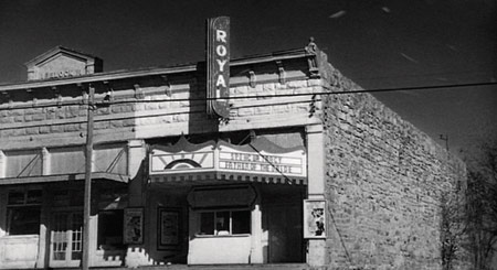 ALL ALONE: The atmospheric black and white fades in on Anarene’s lone movie theater; wind and tumbleweeds blow through the dirt main street.