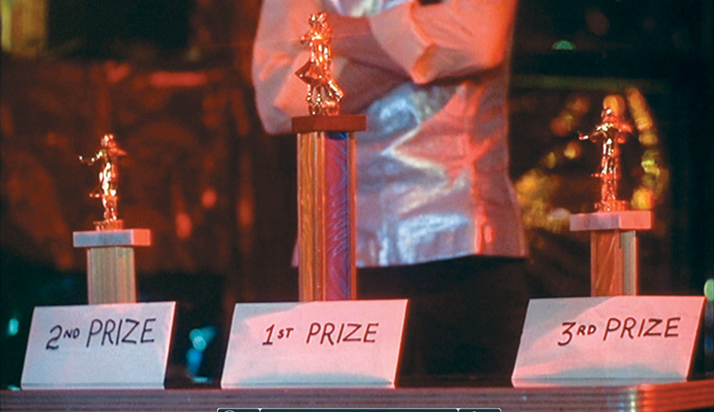 The prizes had to look exactly like what you’d walk in and buy off the shelf for whatever you could afford, so these came from the local trophy shop. The truth is so much more fun than fantasy. Even our wardrobe was all off the racks. We didn’t make a single thing, except maybe the white dress that she wears. My approach to the film was, we’re documentarians coming from Asia to shoot what’s going on, what we see.