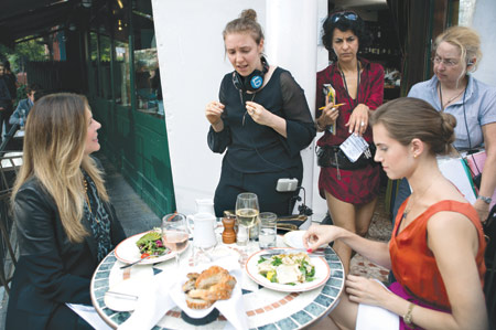 LUNCHTIME: Dunham, directing Rita Wilson (left) and Allison Williams, says if you’ve cast the right people, half your job is done.