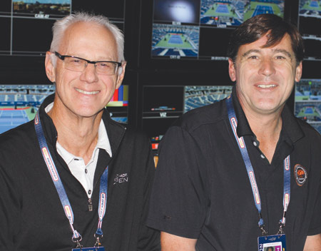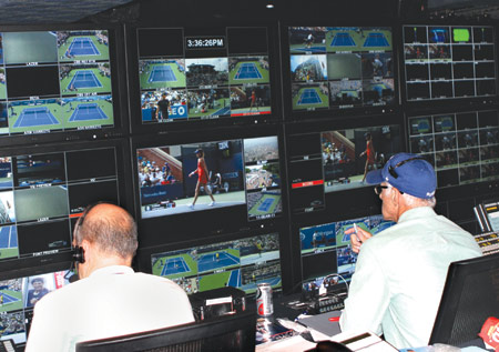 In the first week the store is stocked with not just shots, but matches themselves, which are going on all over the Billie Jean King Tennis Center grounds. They need to be covered, too, since CBS is responsible for the worldwide feed, manned by coordinating director Jim Cornell, who also directs studio updates and takes over for Fishman during meal breaks. Many of the international feed directors, working in separate trucks, are ADs getting a first shot at simple, unadorned play-by-play sports directing. “This is a great learning ground for the younger guys coming up who are not directors yet,” says Fishman. “If they only have four or five cameras to work with, it’s not a big deal for them.”