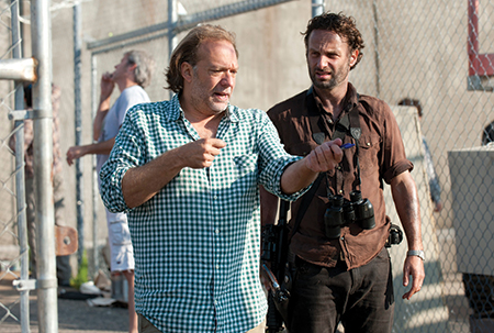 Dead Zone: (top) Director-producer Greg Nicotero says he and his other directors, including (bottom) Michael E. Satrazemis, try to keep things elegant and simple by avoiding flashy camerawork, handheld shooting, and super-fast cutting. (Photos: Gene Page/AMC)