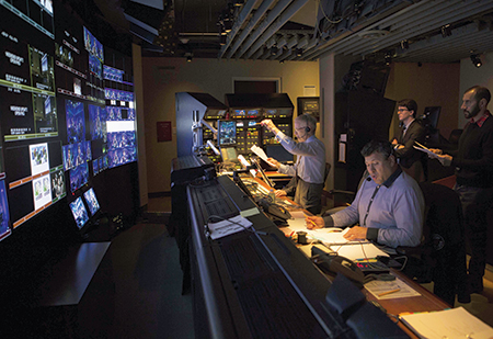 "I'm eyes and ears for Don," says Kelly, who has been managing the studio floor for 15 years, primarily overseeing the stagehands and set crews, but also making sure that everybody else out there is getting what they need. "Everybody knows what to do," he says. "I don't have to babysit too much. But I'm making sure everyone's getting the proper message."