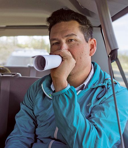 Speaking Up: John Lee practices using a megaphone to rally his team on Pee-wee’s Big Holiday. (Photo: Courtesy Glen Wilson/Netflix)