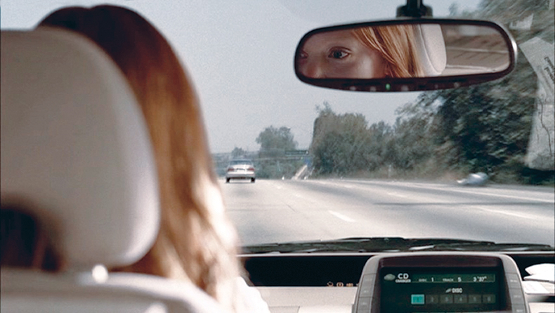We shot this on a soundstage; Claire’s car is in front of a green screen, because this is where you start to see things outside the car speeding up as she’s driving, which would have been hard to do otherwise. It’s what happens as we grow older; life seems to go faster. I didn’t center her eyes in the mirror because any time I see a mirror in a movie and the person’s face is perfectly framed with both their eyes, it feels phony and set up. I did want to see a piece of her in the mirror because it was important to link her to the fact that life speeds up. But I didn’t want it to be all perfect. I like the fact that she was watching things speeding up but she herself isn’t.