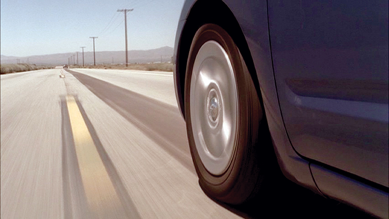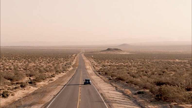 This wheel is a nod to the shot in the title sequence, of the gurney wheel [in the funeral home] pivoting and moving away from us, perfectly timed to Thomas Newman’s beautiful music. I always thought that was such a great shot, the way the gurney swiveled and then we were pushing toward out-of-focus white light. We used a camera rig on Claire’s car and shot somewhere close to Palmdale. I’d like to say this sequence was particularly challenging to edit but editor Michael Ruscio and I had been working together for five years already, so we were pretty much in sync. We had the footage, too; it’s much more difficult to edit when there are shots you need and you don’t have them.