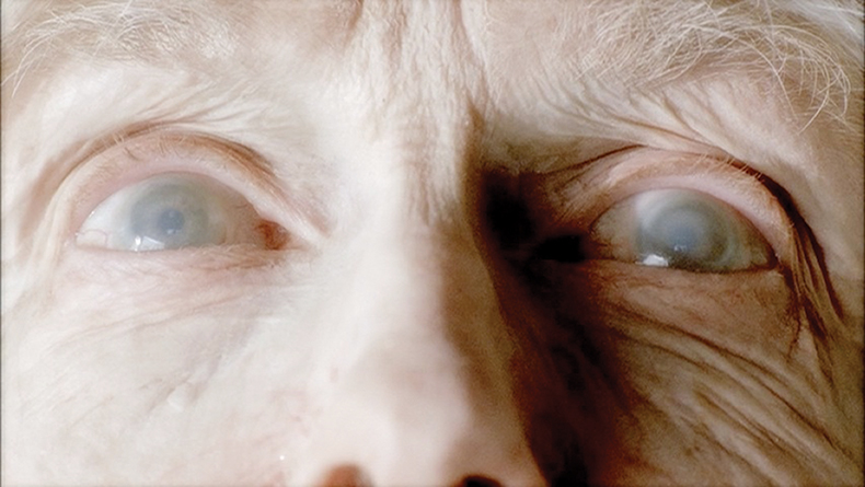 We gave the actress these milky contact lenses to really drive home the age. From here we get [the title card] of Claire’s birth and death dates and then go back to Lauren’s youthful eyes. I wrote it into the script, that we’re close on elderly Claire’s eyes, we cut to the title card, and come back to a match shot of Claire in the present day. I guess the intention was, ‘Yes, we’re all going to die, but right now we’re alive and on the journey.’ Claire, like all of us, is driving into the future. A huge part of what works about this sequence, I think, is the song “Breathe Me,” by Sia. Our music supervisor Gary Calamar brought it to us and we basically storyboarded to it, shot to it, and edited to it. Gary brought us a lot of options, but this one just really jumped out.