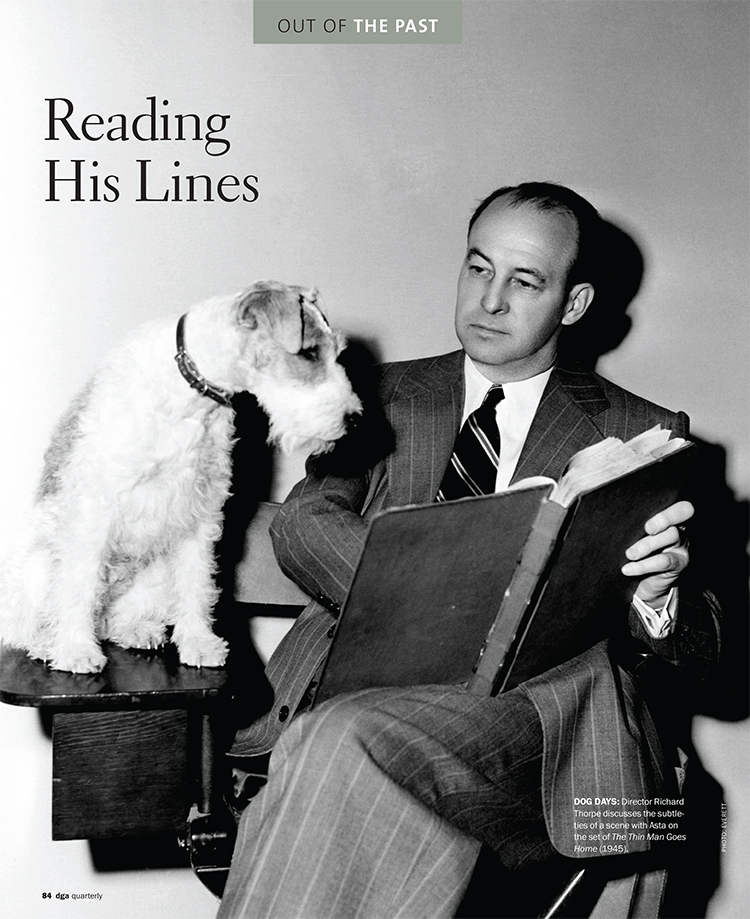 DOG DAYS: Director Richard Thorpe discusses the subtleties of a scene with Asta on the set of The Thin Man Goes Home (1945).