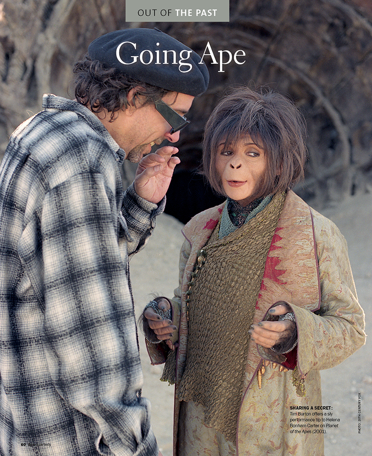SHARING A SECRET: Tim Burton offers a sly performance tip to Helena Bonham Carter on Planet of the Apes (2001).