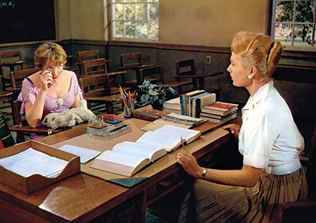 Later, Linklater admires how Minnelli stages a scene set in a high school classroom that brings together both of Dave’s women: the uneducated, utterly available Ginny and the frustrating, ivory tower Gwen. Ginny has worked up the nerve to lay her cards on the table: She loves Dave but doesn’t want to impede his happiness, so she’ll clear out of the picture if Gwen plans to marry him. Gwen assures her grateful rival she has nothing to fear. "You see how Shirley sits at a little desk, like she’s a student," says Linklater, while the crisply dressed Gwen, hair upswept, holds her position of authority behind the teacher’s desk. Again, Minnelli puts them both in his wide shot. "What are these two opposite archetypes even doing in the same frame is the question," Linklater muses. "It’s so awkward. It’s the most brilliant and unnerving scene in the movie."