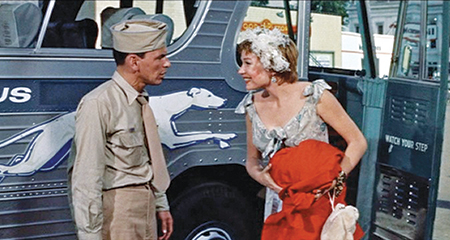 The MGM lion roars, and is outdone by the growling bass tones of Elmer Bernstein’s hyper-dramatic score, as two sleeping passengers stir to life on a bus that rolls through the Indiana countryside and comes to a stop in the small town of Parkman. One is Dave, a moody, hung-over Army corporal in uniform; the other is Ginny (Shirley MacLaine, in one of her earliest film roles), a sweet, high-spirited floozy who has attached herself to him since the night before in Chicago.