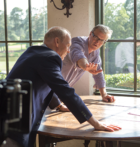 ENTREPRENEUR: John Lee Hancock orchestrates a scene from The Founder with his leading player, Michael Keaton. (Photo: Daniel McFadden )