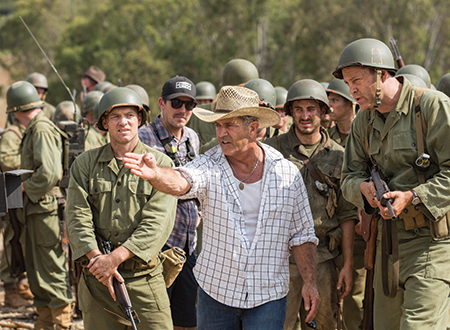 Mel Gibson, top, commands the troops on location for Hacksaw Ridge; Jeff Nichols directs Joel Edgerton on the set of Hidden Figures.(Photos: (Top) Mark Rogers; (Bottom) Ben Rothstein/Focus Features)