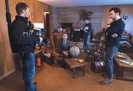 Whether filming in motel rooms or living rooms, they stuck mostly to the brothers' one-camera aesthetic (Albert filmed, David recorded sound), which meant no coverage. "We had to be a little bit behind the action," says Thomas. "The camera can't be on Fred before he says a line. We had to react to hearing it." Later, in post, using the texturing tool LiveGrain, they made the footage look old, but not too old. "It's a fine line of making it look like the Criterion version, so they would have cleaned it up a little bit, but there were scratches they couldn't get rid of," says Buono, adding, "it's that geeky world we play in."