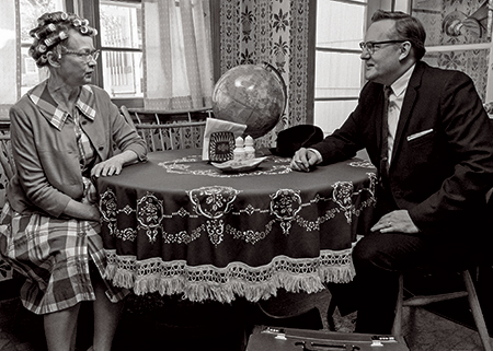 (Top) A scene from Salesman; (Bottom) the Documentary Now! recreation. (Photos: (Top) PhotoFest; (Bottom) Elizabeth Morris/IFC)
