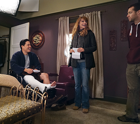 At the Helm: (Top) Creator Nahnatchka Khan, far right, also directed two episodes; (Middle) Jude Weng, center, had not directed scripted TV prior to Fresh Off the Boat; (Bottom) Director Bill Purple, center, hailed from a 1st AD background. (Photos: (Top and Bottom) Eric McCandless/ABC; (Middle) Michael Ansell/ABC)