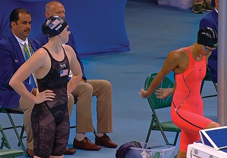 3. When King out-touched Efimova for the gold, "we were watching for the moment to get the look of disappointment from Efimova," recalled Martin. "We obviously showed Lilly right away when she realized she won—her reaction, the fist pump and splashing the water. And we were keeping our eye on Efimova when she lost to the person who basically had been calling her out. And you can see the moment of disappointment when she dropped her head and realizes it."