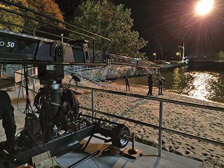 Director Lev Spiro had meticulously planned 12 setups for the character's 40-foot walk out into the chilly waters of Long Island Sound, including the use of a 50-foot Technocrane to "shoot a variety of cinematic shots."