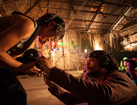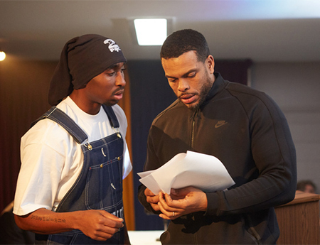 Director Benny Boom works out a scene for All Eyez on Me with his lead actor Demetrius Shipp Jr., who plays the late rapper Tupac Shakur. (Photo: Quantrell Colbert)